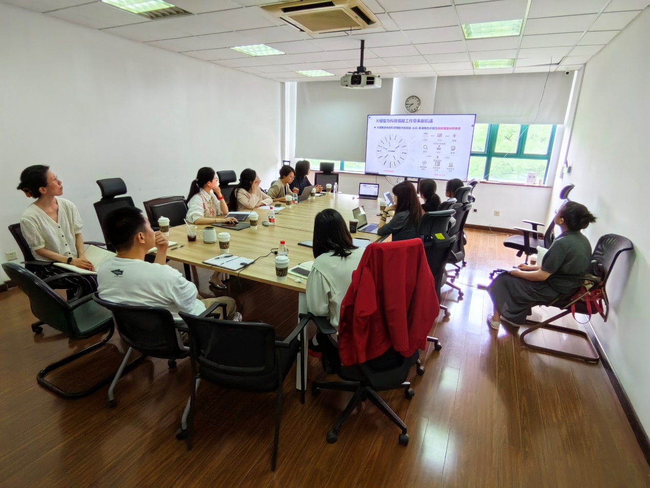 本次研討會特邀中國科學院成都文獻情報中心副研究員徐婧作專題報告。會上,徐婧分享了情報工作中存在數據準備和分析耗時、技術含量不高的痛點問題,介紹了借助AI平臺與情報專家協同演進有效提升效率的成功經驗。業務信息化、資源數據化、情報過程智能化為參會人員帶來諸多啟發。與會人員圍繞AI賦能工具整合數據資源,支撐情報監測、快報服務、知識管理全流程,實現科技快報制作時效性與成果長期保存并輔助科研決策等多方面內容展開了熱烈討論。