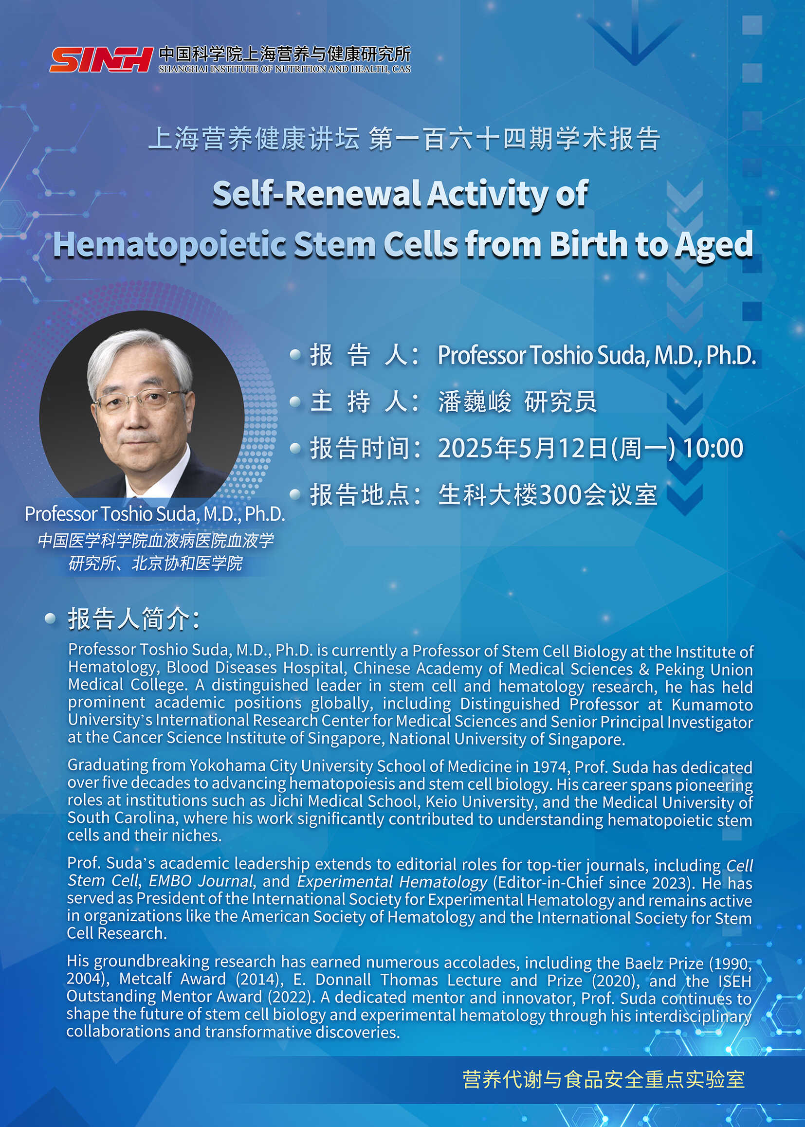 5月12日|Self-Renewal Activity of Hematopoietic Stem Cells from Birth to Aged-上海營養健康講壇
