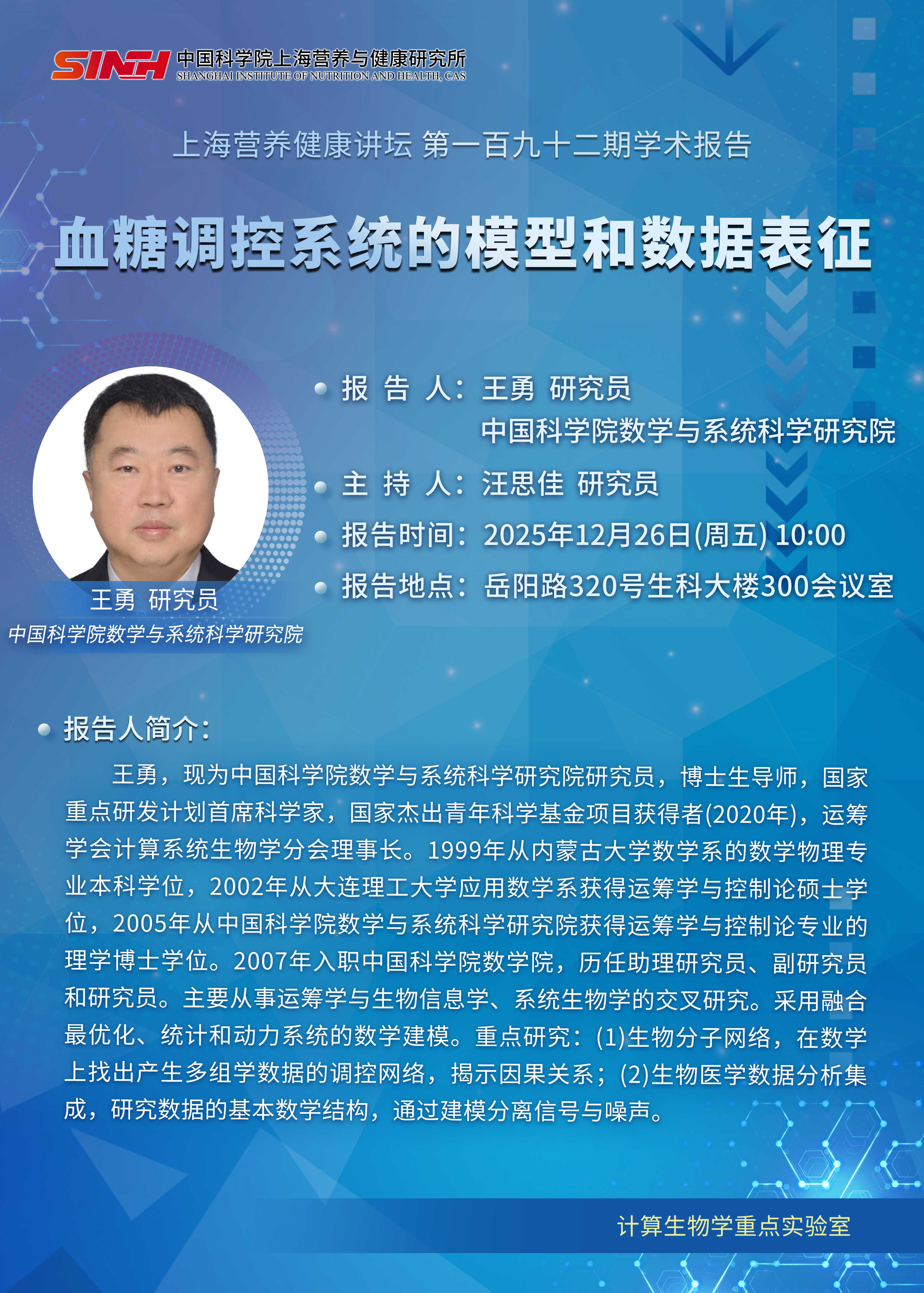 12月26日|血糖調控系統的模型和數據表征-上海營養健康講壇